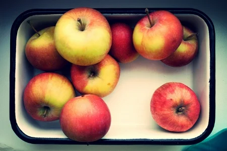 As for my initial dilemma, the mango wound up in the living room on a table in front of the sunny French doors ’til rosy and edible. The apples, peeled and sliced, went into a pie. Faced with this new threat, I fell back on an old principle: If you can’t beat ’em, eat ’em.