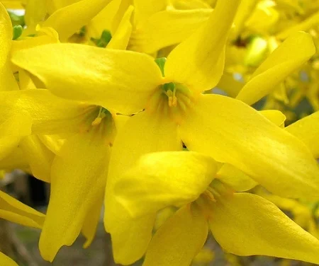 Most of the plants we know are Forsythia x intermedia, a cross between the first two species dragged from China to Britain, Forsythia suspensa and Forsythia viridissima. Cultivars of this hardy garden favorite exist — ‘Lynwood Gold’ and ‘Spring Glory’ have larger flowers than the species — but shrub shoppers ordinarily buy the common kind, which is perfectly satisfactory.