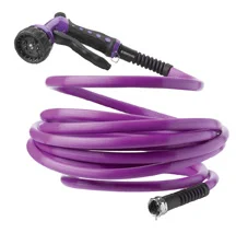 Water Right’s new super-light polyurethane hoses weigh less than half as much as the standard kind, making the job much easier. Fitted with solid brass fittings and industrial-strength spring guards to prevent hose-end kinking, the colorful hoses are designed to remain flexible at all temperatures. They are drinking water safe, too, if you’re the kind who treats hoses as impromptu water fountains.